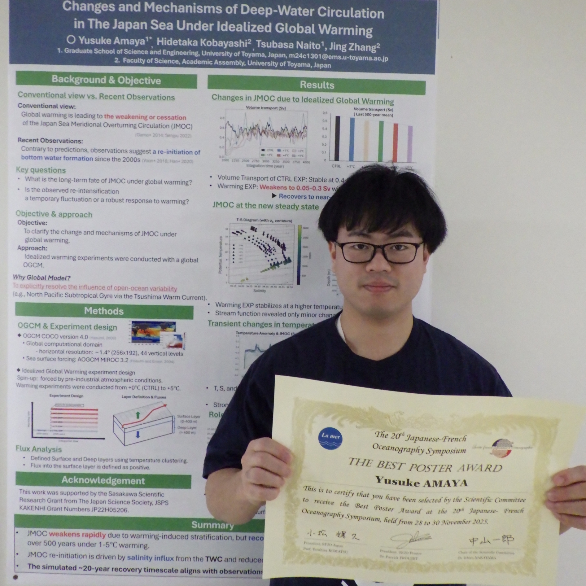 - Mr. Yusuke AMAYA (University of Toyama): Changes and Mechanisms of Deep-Water Circulation in The Japan Sea Under Idealized Global Warming