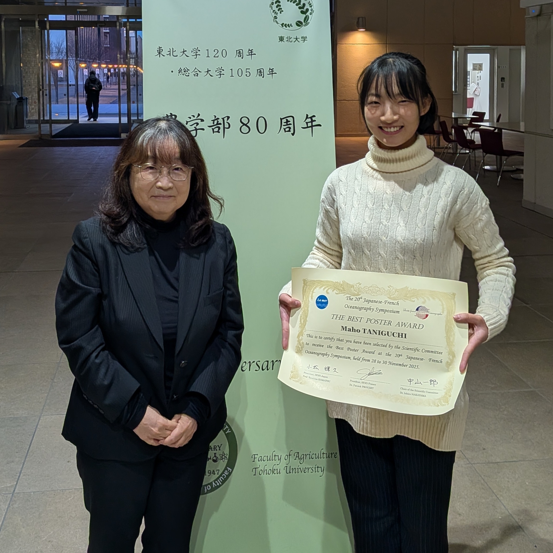 To further encourage the motivation of outstanding young researchers, the Toba 2025 Japanese-French Oceanography Symposium presented Student Best Poster Awards.